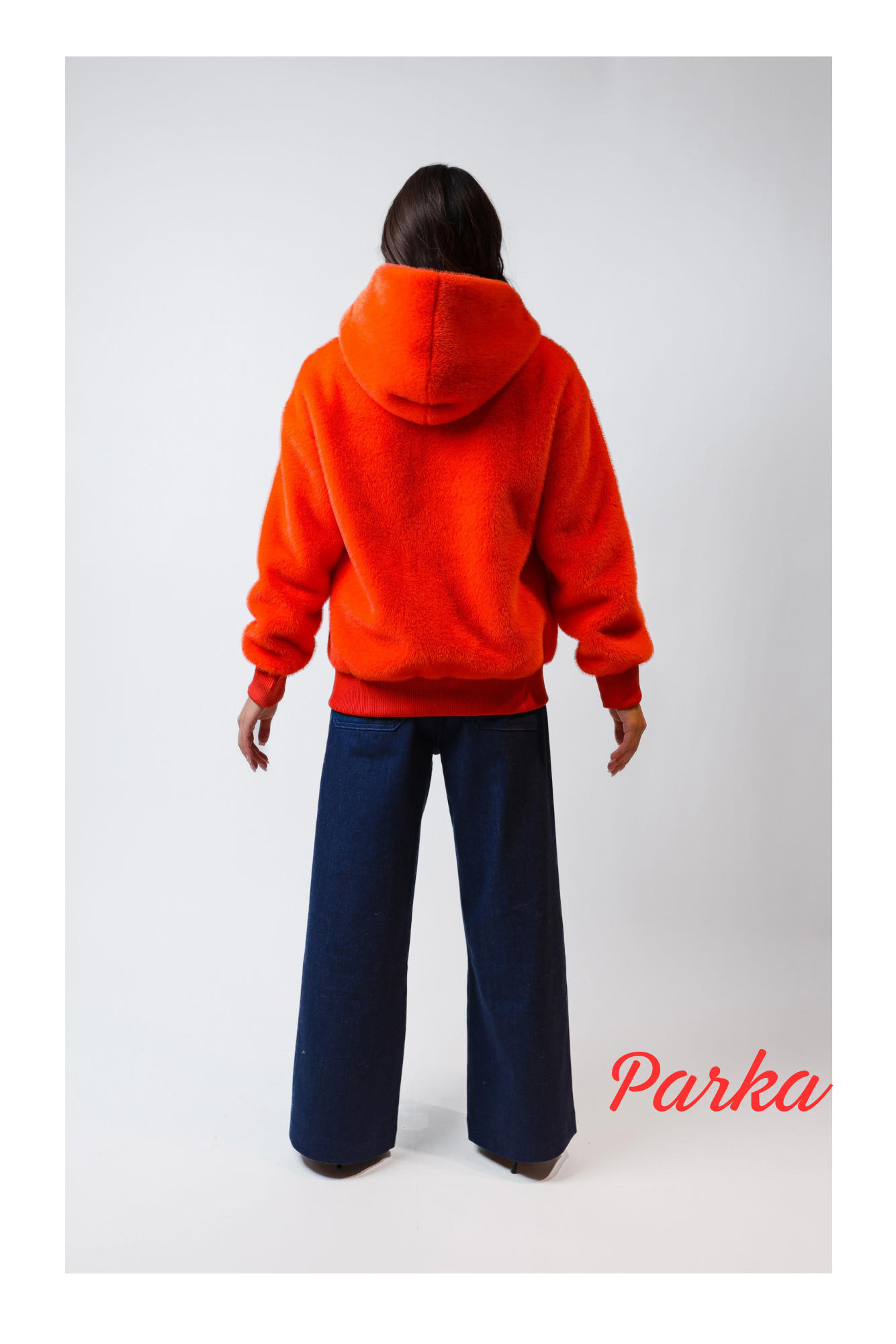 Lightweight and soft faux fur coat of premium quality. Features a deep, comfortable hood and ribbed knit cuffs/hem that hold their shape. Elegant, warm, and easy to wear for everyday or evening looks.